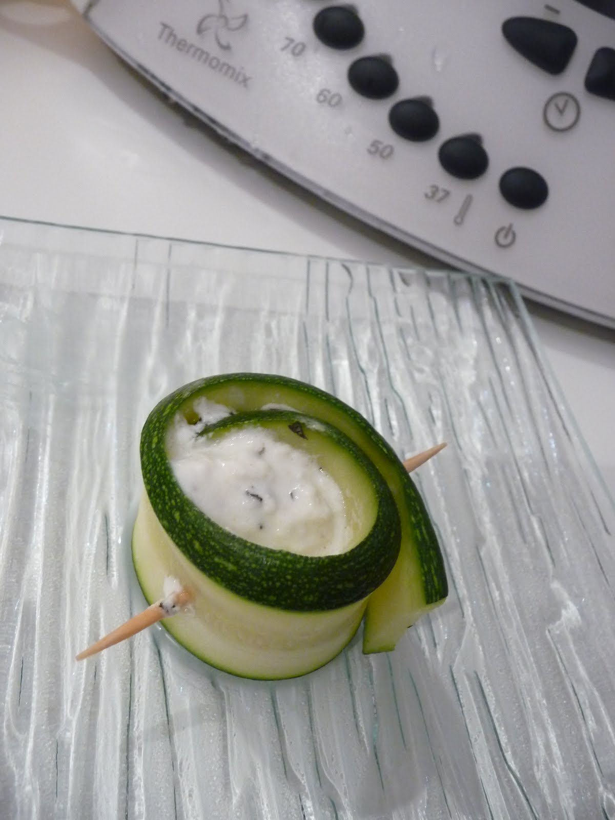 Voici de petits rouleaux de courgettes farcis au fromage de chèvre réalisés avec mon Thermomix magique mais pour autant, tout à fait réalisable sans !