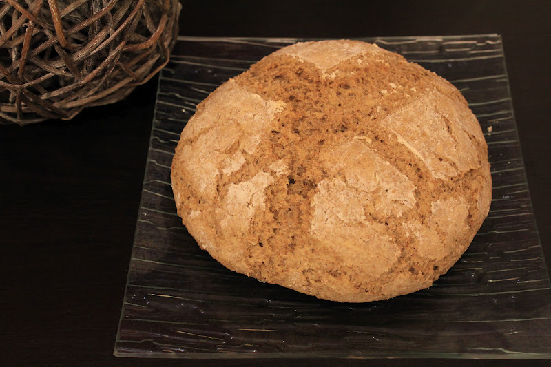 Placer tous les ingrédients dans la cuve en commençant par l’eau. Lancer le programme « pâte » (2h) pour moi. Dégazer la pâte, la laisser reposer 1h. La façonner et laisser reposer 2h au chaud. Faire préchauffer le four à 210. Saupoudrer de farine (ou pas !). Placer sur la plaque de four avec un petite ramequin rempli d’eau (ça permettra à votre pain d’avoir une jolie croûte). Cuire 35mn.