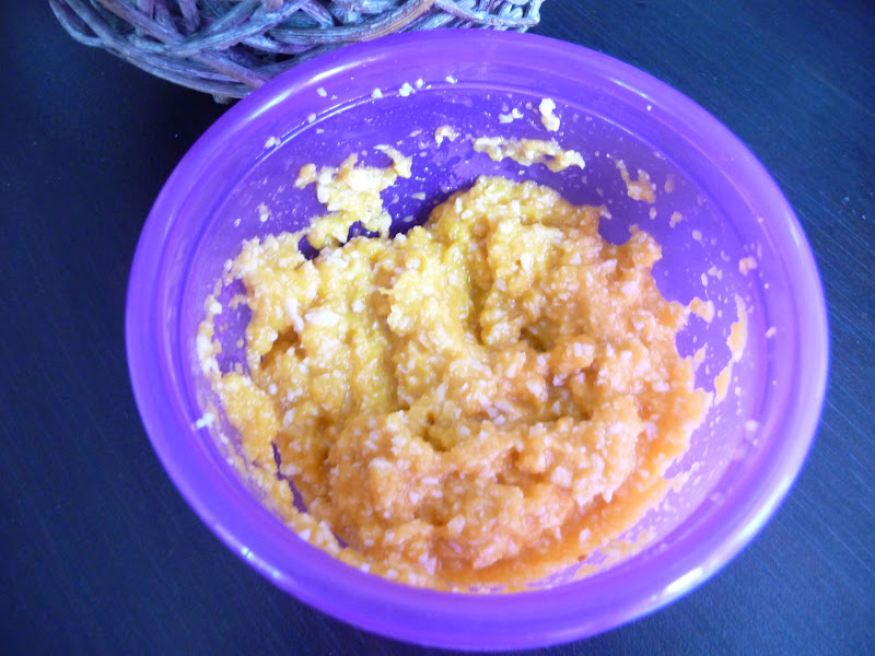 Ne me demandez pas pourquoi, mais j’ai voulu initier P’tite No au sucré-salé … Je lui ai donc réalisé cette purée courgette, pomme et carotte au kiri pour bébé, au thermomix. Sur la photo, j’avais rajouté du jambon de dinde : la purée a donc une texture « normale » au naturel 🙂
