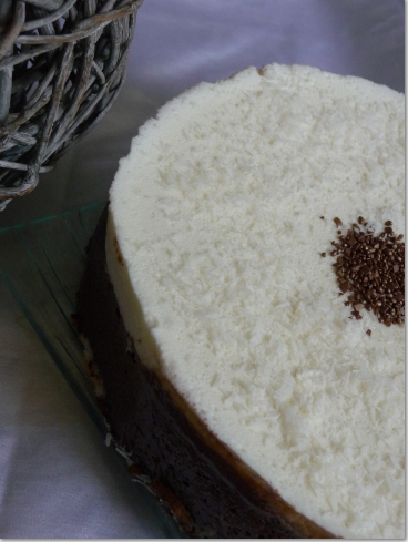 celle au chocolat. Laissez reposer 12 heures au frais. Côté déco, vous pouvez mettre noix de coco et paillettes de chocolat 🙂