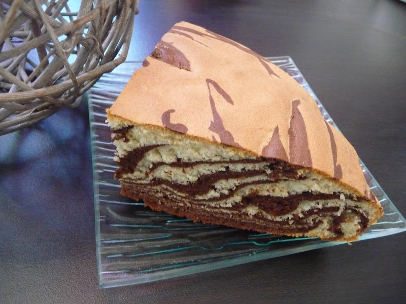 Cette recette a fait le tour de la plupart des blogs culinaires. Je l’ai regardée, regardée et encore regardée jusqu’à un jour la réaliser. Je crois que j’ai fait un mix des recettes de plusieurs blogs donc je n’ai pas de source en particulier. D’autant plus que j’ai adapté la recette au thermomix, pour plus de confort. Il a fait grand effet ce marbré italien avec ses rayures et sa texture aérienne.