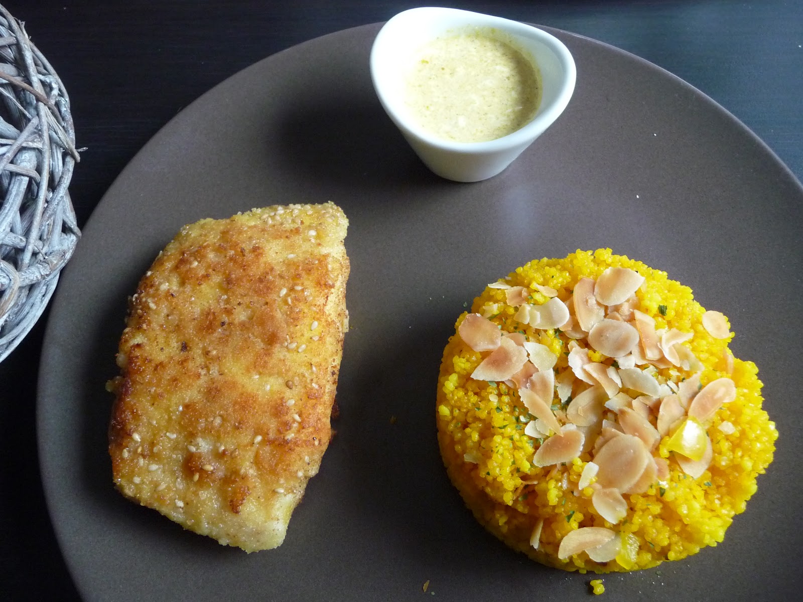 Une recette en deux temps. Aujourd’hui, je vous publie mon joli cabillaud pané au sésame et sa mayonnaise orange/curry. Demain, vous vous régalerez avec la semoule aux amandes et à l’orange. Patience 🙂