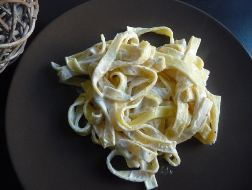 Faire cuire les tagliatelles comme indiqué sur le paquet, dans une eau bouillante. En parallèle, mettre doucement à fondre le fromage avec la crème jusqu’à ce que le tout devienne lisse. Servir bien chaud.
