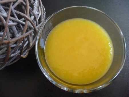 Les beaux jours sont de retour (pour de bon j’espère!) et j’ai envie de fruits. Voici une soupe de mangues au muscat (au thermomix ou sans). Pour info, je l’avais servie surmontée d’une boule de sorbet au chocolat. Mariage réussi !