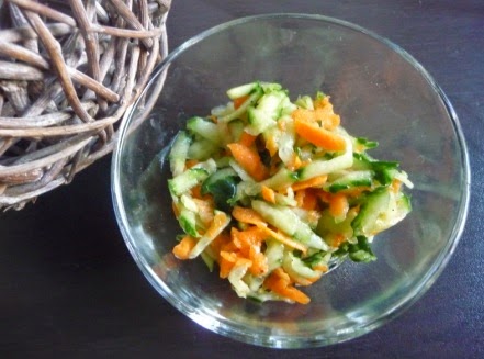 Une recette fraîcheur qui m’a été soufflée par une copine qui a eu une super idée : la salade de carottes et concombre râpés au miel. Je n’aurais jamais parié sur ces mélanges mais il faut bien avouer que c’est une réussite !