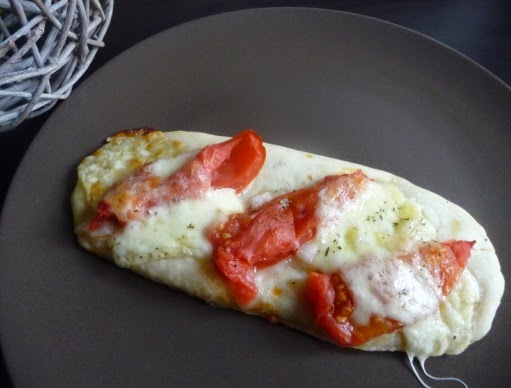 Mettre tous les ingrédients dans l’ordre dans la cuve de la machine. Choisir le programme « pâte à pâte » (pour moi, 12mn). Sortir la pâte et la laisse gonfler environ 20 mn dans un endroit sec (le micro-onde éteint par exemple). Etaler en 4 bandes. Garnir d’oignon émincé, de tomate en rondelles et d’un peu de mozzarella. Saler, poivrer et saupoudrer de thym. Enfourner pour 20mn à 210.
