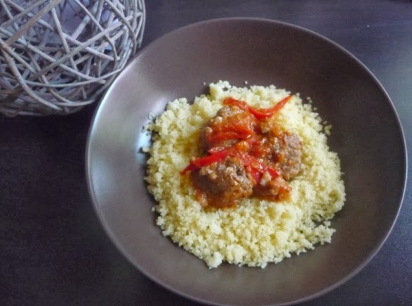 Boulettes boeuf et agneau, sauce tomates/poivrons et leur semoule