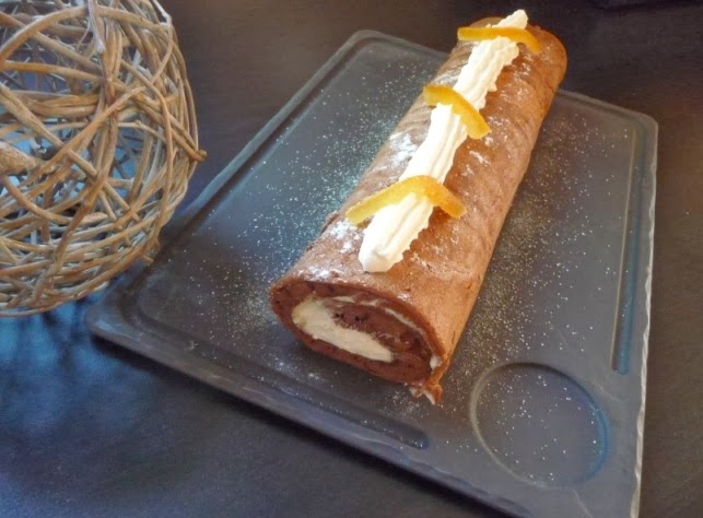 Une recette qui n’est plus tout à fait de saison mais qui vous servira, je l’espère, pour vos festivités de l’an prochain. Voici une bûche de Noël : roulé caco, chantilly et orange, dés d’oranges confites (au thermomix ou sans) toute en légèreté et en simplicité. C’est parfois appréciable après un repas copieux.