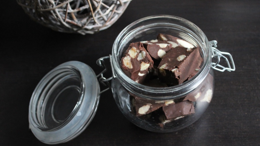 Un petit tour du côté de l’Angleterre avec des confiseries gourmandes nommées fudges au chocolat, praliné et amandes (au thermomix ou sans). Il s’agit de bouchées tendres et fondantes, garnies de au choix d’amandes, noisettes, pistaches ou autres. Je les ai trouvées parfaites à offrir en cadeaux gourmands de fin d’année.