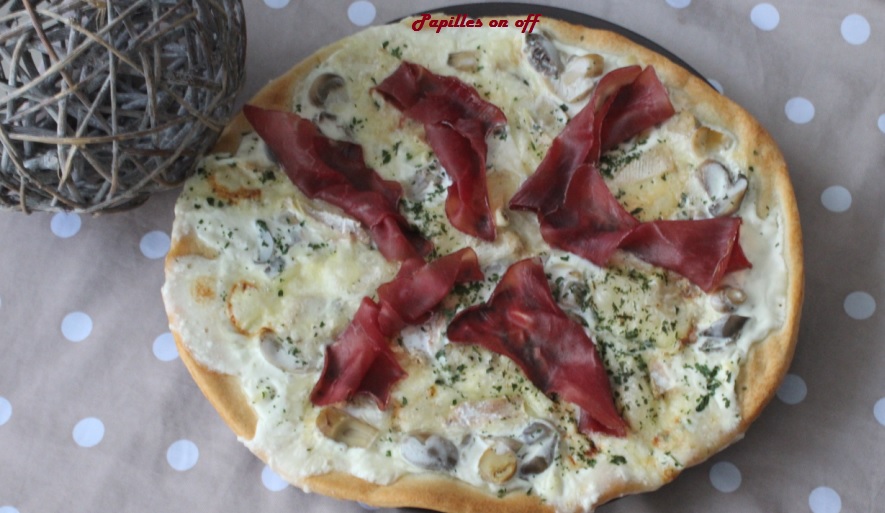 Une pizza à ne jamais faire sous peine d’en devenir instantanément addict… jusqu’à ne plus pouvoir vous arrêter ! Elle ne se compose que de bonnes choses : il s’agit d’une pizza aux champignons, mont d’or et bresaola (au thermomix ou en MAP). Profitez avant que le printemps ne s’installe vraiment 😉