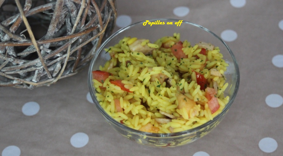Salade de riz au curcuma, tomates et champignons
