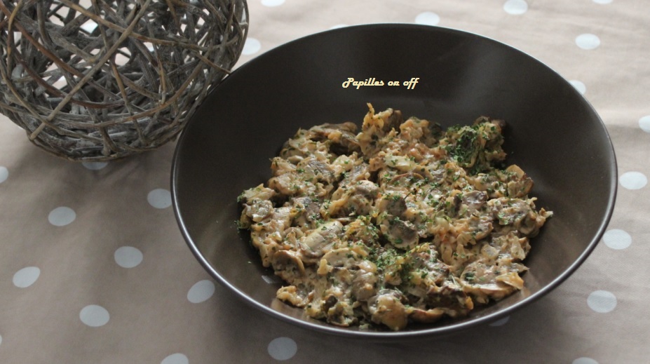 Emincer finement les champignons et les faire revenir dans de l’huile chaude. Ils doivent rendre toute leur eau. Leur ajouter l’oignon émincé, le persil, du sel, du poivre et laisser cuire un quart d’heure à feu moyen. Ajouter enfin le ketchup et la crème, laisser réchauffer 5mn à feu doux et servir chaud.