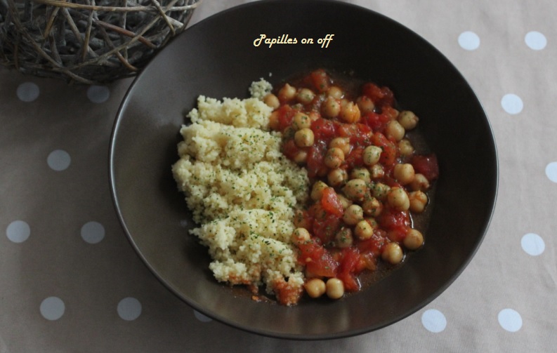 Il faut se rendre à l’évidence : je cuisine de moins en moins de viande et de poisson. Il ne s’agit pas d’une quelconque lubie ; cela s’est fait très progressivement Je crois que j’ai tout simplement pris conscience que viande et poisson n’étaient pas la seule source de protéines. Il y a également les légumineuses, qui, accompagnées de féculents, n’ont rien à envier à leurs grandes soeurs plus connues. Voilà pourquoi pendant les vacances, j’ai réalisé ce plat de semoule aux pois chiches et à la tomate, repéré sur Marmiton. C’était à la fois bon, nourrissant et complet.