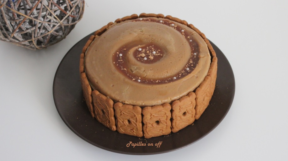 Tout au long de cette année, sur de nombreux groupes Thermomix, j’ai vu défiler des photos et des photos du « délice pommes spéculoos », présent sur l’un des livres de la marque. J’avais lu qu’il était hyper bon mais trop sucré et manquant un chouya de pommes pour qu’il soit parfait. J’attendais une occasion de le réaliser ; ce fut le cas pendant les vacances. Mais quand je me suis penchée sur la question, je me suis rendue compte qu’il faudrait lui faire quelques petits arrangements pour qu’il soit totalement à mon goût : n’étant pas fan des bases type « biscuits+beurre », j’ai préparé à la place une génoise aux épices ; de plus, j’ai remplacé la gélatine animale par de la gélatine végétale, à savoir de l’agar agar. J’ai enfin diminué les doses de sucre et augmenté celles de pommes. Nous étions une bonne dizaine et avons tous fondu devant cet entremet bavarois pommes spéculoos (génoise aux épices, compote de pommes et crémeux spéculoos, au thermomix ou sans). Je le recommande vivement dans cette version (mais peut-être que la version originale est terriblement bonne aussi !). J’ai utilisé mon moule Vortex pour que le dessus soit hyper mignon ; vous validez aussi ?!
