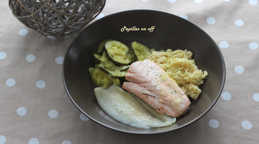 Connaissez-vous le joli blog Oh la Gourmande? Tenu par Delphine, il propose des plats simples et goûteux. Lorsque je vois passer des recettes, je me dis souvent que ce sont des choses que je pourrais refaire pour ma petite famille. Ayant elle aussi sorti une collection de recettes sur Cookidoo, j’ai sans souci pu tester son tajine de limande et saumon aux courgettes (au thermomix ou sans). Je l’ai servi avec de la semoule.