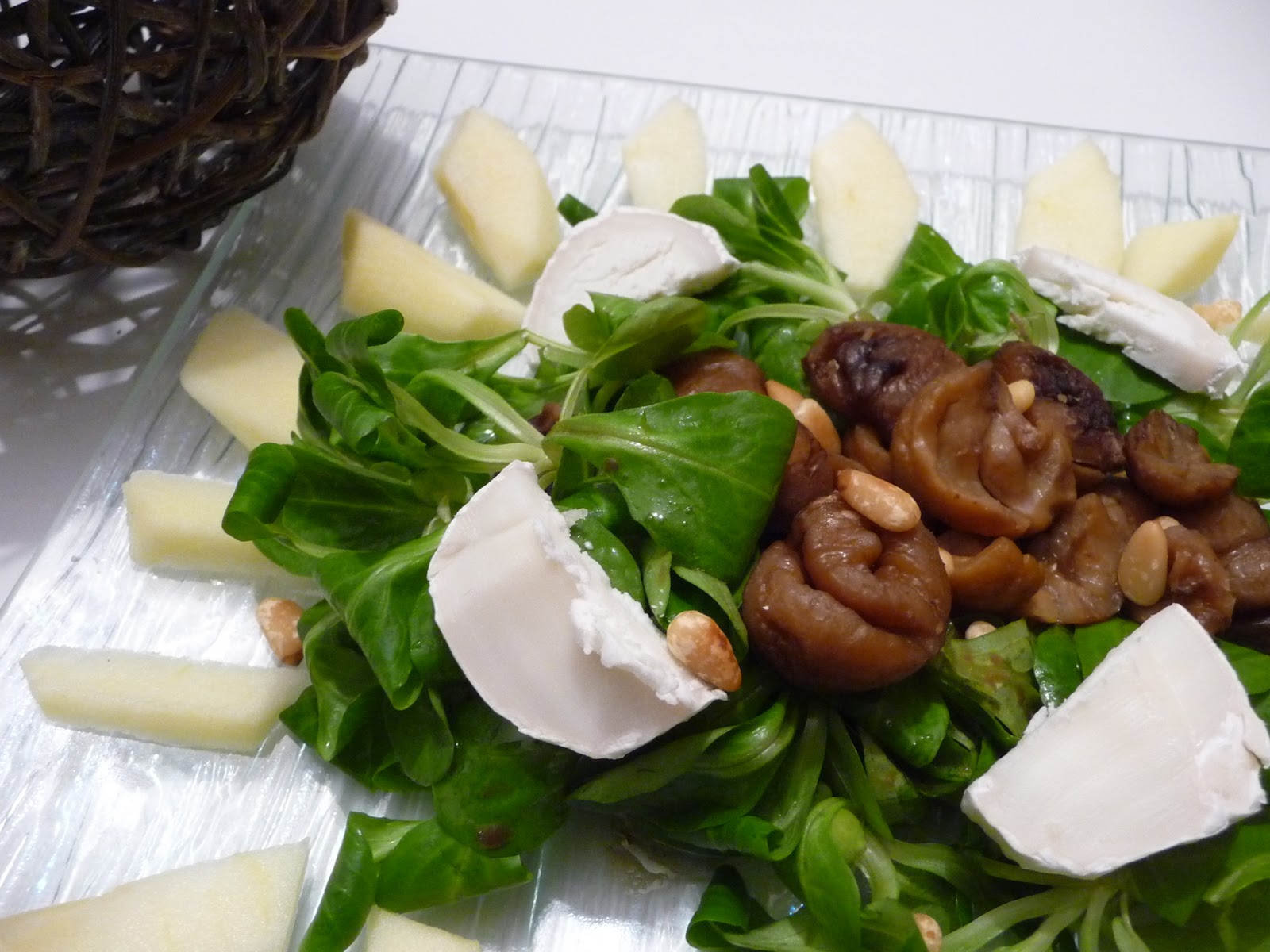 La salade châtaignes, pommes, chèvre et pignons ? Une salade sucrée-salée que l’on peut manger après un bon plat… Elle fait office de salade / fromage /dessert à elle seule et ça m’a plu ! Si en plus vous l’accompagnez d’une vinaigrette au miel… je ne vous dis que ça !