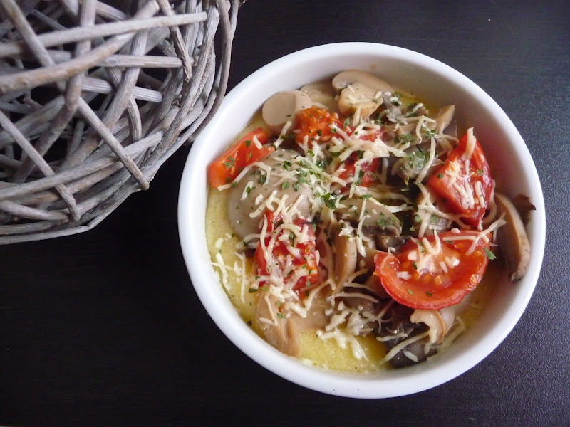 Le midi, j’aime être calée pour pouvoir tenir jusqu’au soir sans avoir l’estomac qui crie famine. J’ai donc repéré cette recette de gratin de polenta aux champignons et à la tomate. C’est archi simple mais ça permet de varier les plaisirs.