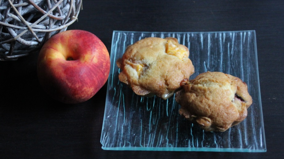 Dans le bol, placer tous les ingrédients sauf les nectarines et le chocolat blanc. Mixer 20s, 7. Ajouter le chocolat et le fruits pour 45s, sens inverse, 3. Verser dans 12 moules à muffins et cuire 20mn dans un four préchauffé à 180.